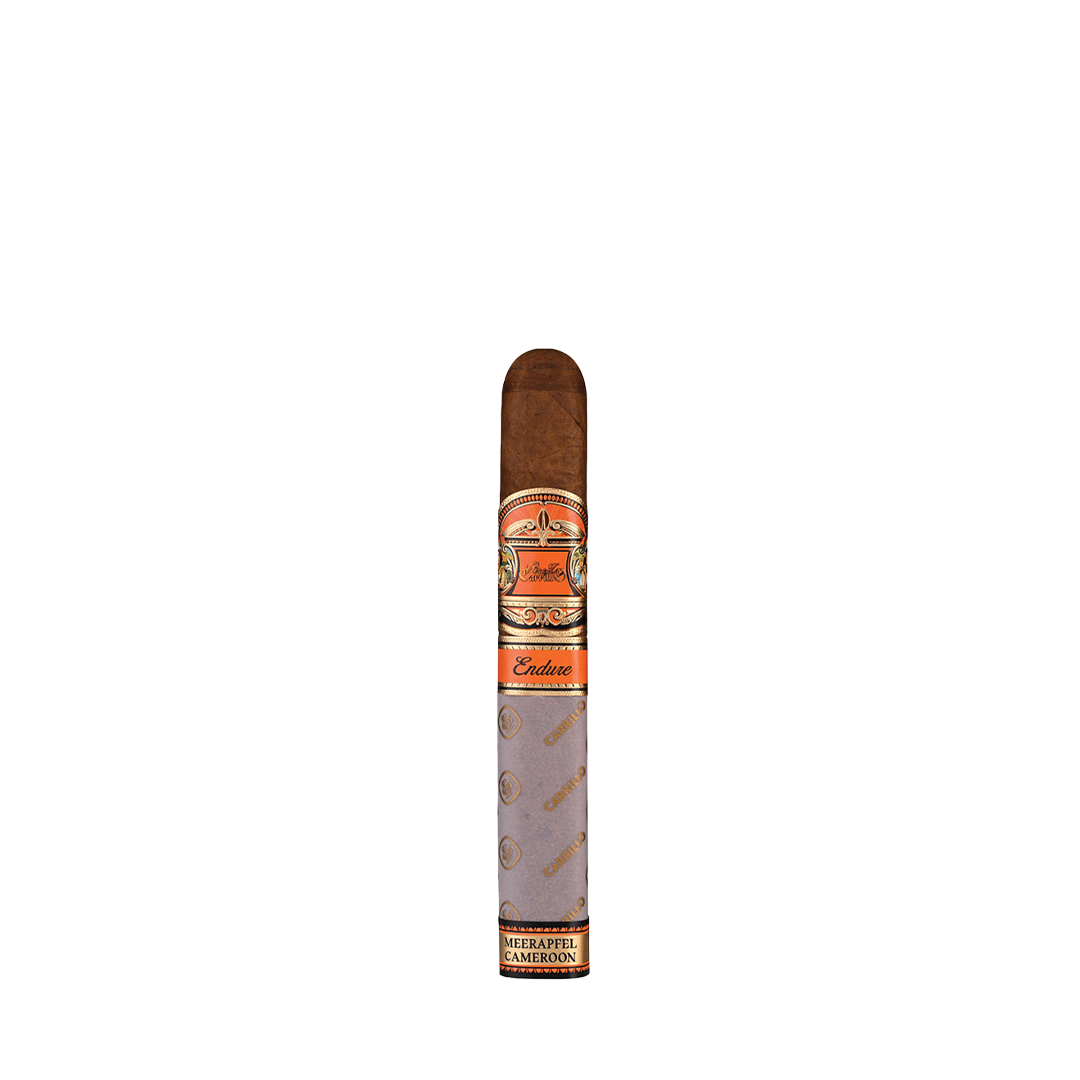 Description: "Endure" is the culmination of two legendary legacies. The Perez-Carrillo family's trek from Cuba to the U.S. showcases their unwavering commitment to preserving the art of cigar making. Meanwhile, the Meerapfel family's vital contribution in preserving the Meerapfel Cameroon wrapper adds a touch of determination and resilience to this blend. This cigar is a story of triumphing over obstacles, from the fields of Meerapfel Cameroon to the skilled hands of craftsmen, resulting in a masterpiece that celebrates the indomitable human spirit.